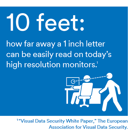 An unprotected screen can expose sensitive and private information, trade secrets and business plans. And the reality is a visual hacker may only need one piece of valuable information to unlock a large-scale data breach.